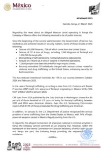 Después de la difusión del reporte del Departamento de Estado, la Embajada de México en Kenia emitió un comunicado sobre el tema.