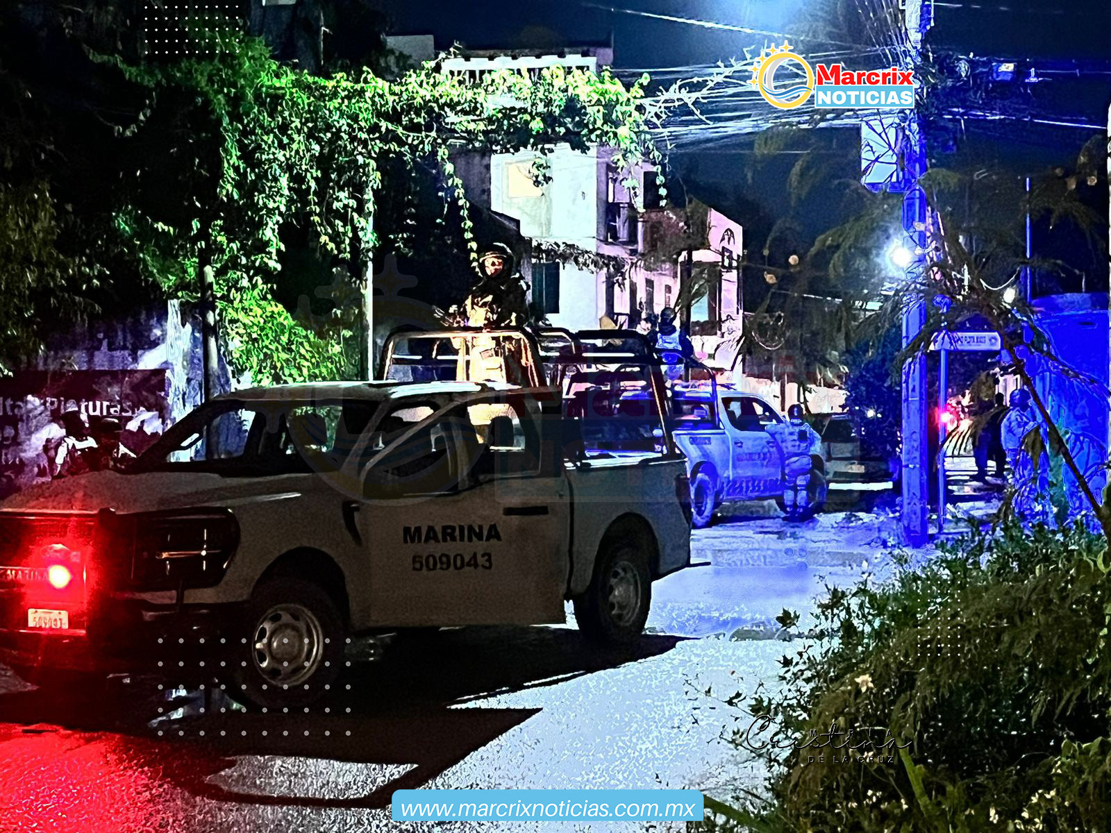 Cancún (Marcrix Noticias).- Un convoy de al menos 20 unidades de la Marina, Ejército, Guardia Nacional, Policía Estatal y de la Fiscalía de Quintana Roo, ingresó la noche de este viernes a la delegción Alfredo V. Bonfil de Cancún.