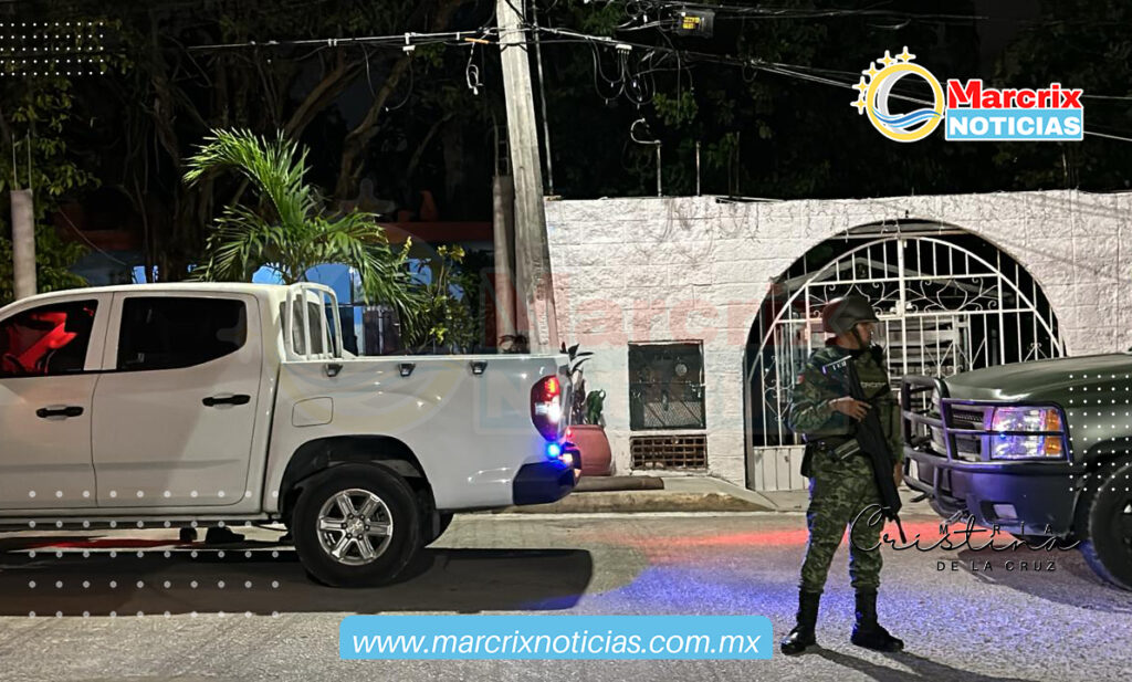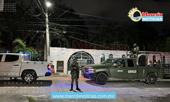 Cancún (Marcrix Noticias).- La Fiscalía de Quintana Roo junto con la Marina y el ejército, realizaron un cateo la noche de hoy domingo en una vivienda en la calle 6 de la Supermanzana 61 de Cancún.
