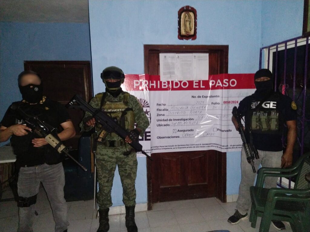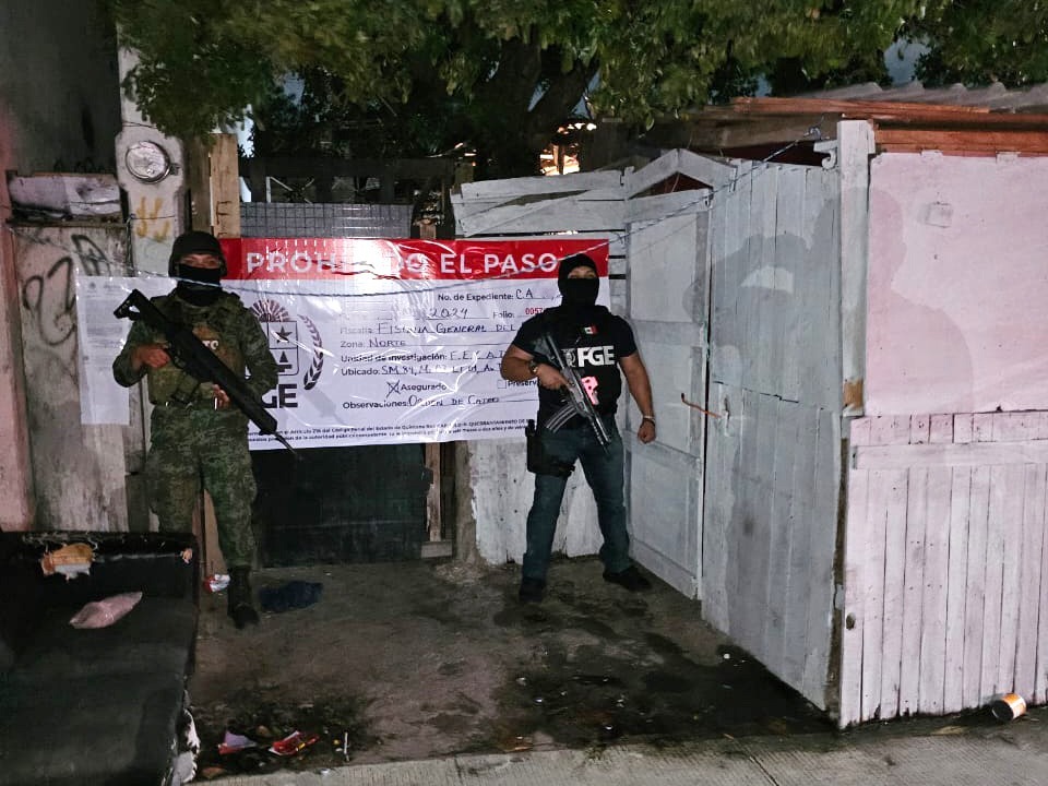 CANCÚN (Marcrix Noticias).- La Fiscalía General del Estado informa que, derivado de actos de investigación, en colaboración con la Secretaría de la Defensa Nacional (Sedena) y la Guardia Nacional, cumplimentó, -por separado- tres órdenes de cateo giradas por jueces de control, dos en este municipio y uno más en Othón P. Blanco, en los que aseguraron diversos tipos de sustancias ilícitas.