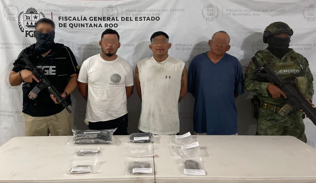 Durante el cateo, cerca del inmueble encontraron a tres personas, quienes se identificaron como Víctor Eduardo “N”, Humberto “N” y Henry Daniel “N”, mismos que fueron turnados a la Fiscalía Especializada en Combate al Delito de Narcomenudeo, para deslindar responsabilidades.