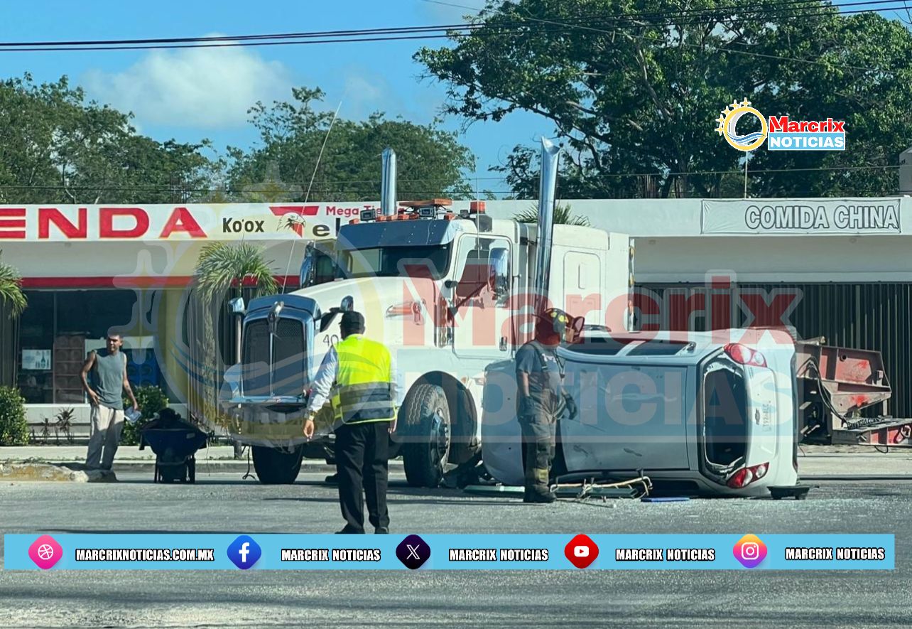 Choca de frente un Chevy contra un tráiler en la Tulum-FCP