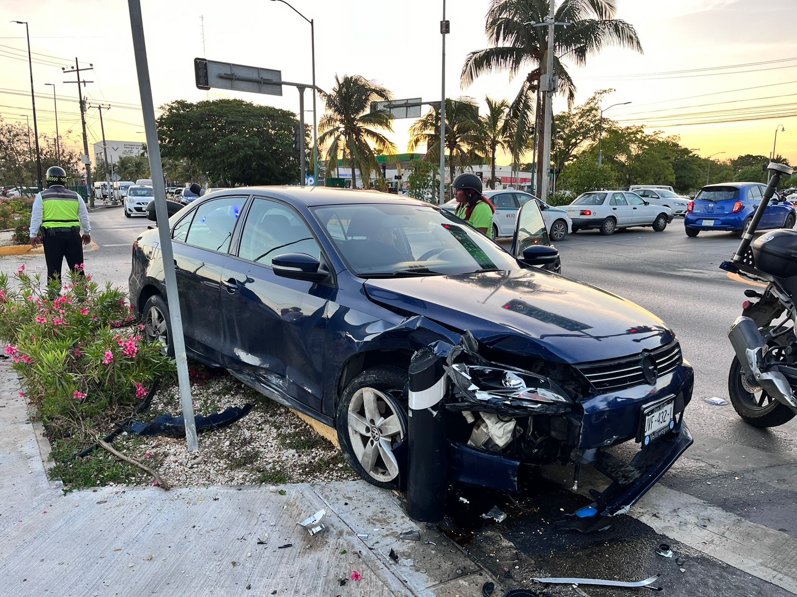 Por fortuna nadie resultó lesionado en este accidente ocurrido en el cruzamiento de las Av. Tanká e Xcaret. Cancún (Marcrix Noticias)- Por evitar embestir a un motociclista que se voló…