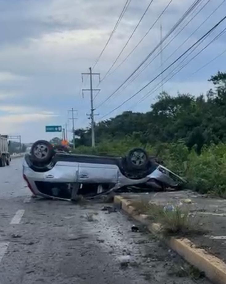 Rescatan a motociclista que cayó sobre la maleza en el Arco Norte de Cancún