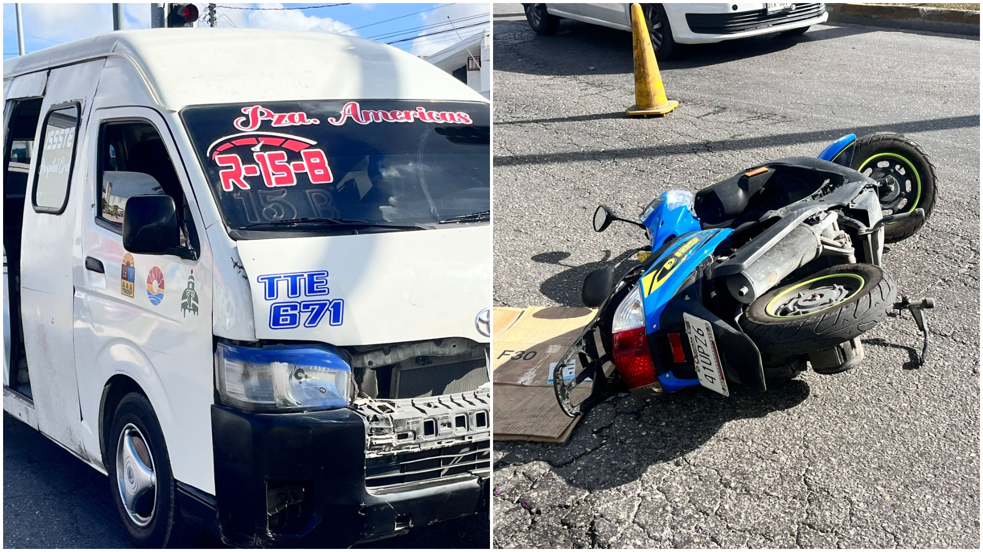 Combi de la Ruta 15 embiste a motociclista en la avenida Kabah de Cancún