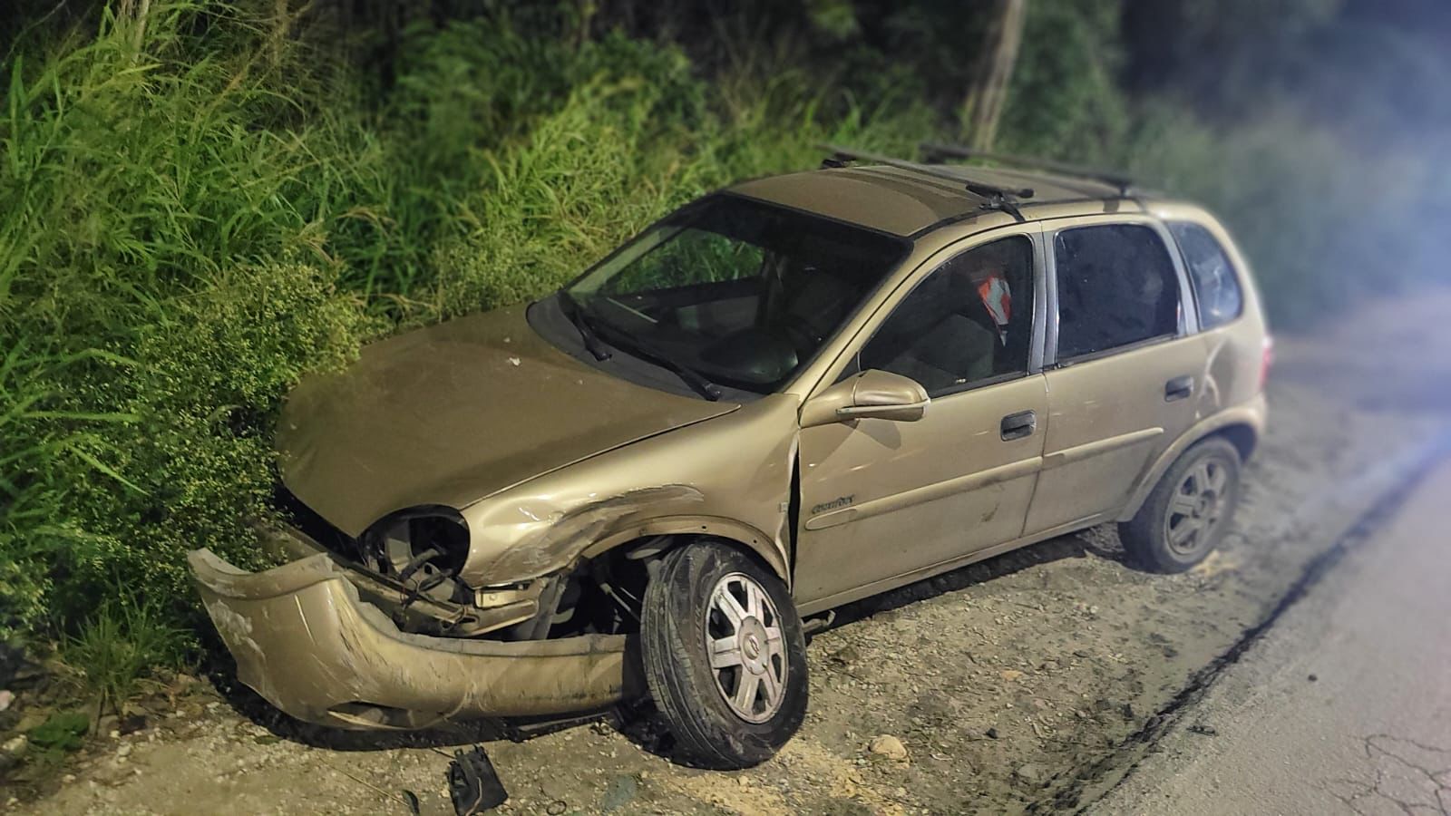 Automovilista choca contra el camellón en la Región 251 de Cancún y deja cuantiosos daños materiales