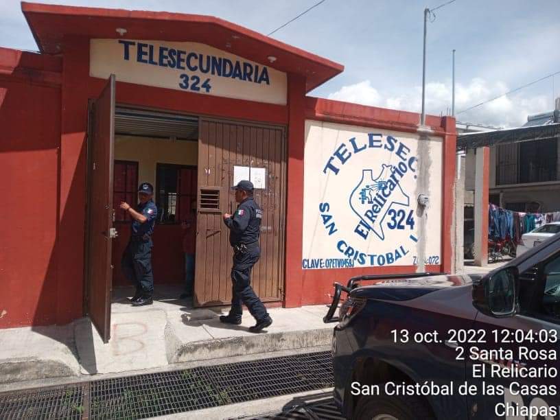 Un par de alumnos de la Telesecundaria 324 de San Cristóbal de Las Casas, tenían entre sus útiles una pistola.