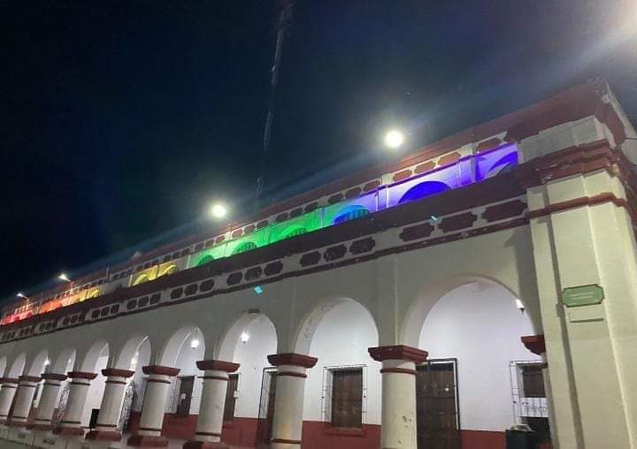 Se ilumina Chiapa de Corzo con los colores del arcoíris para fomentar la inclusión