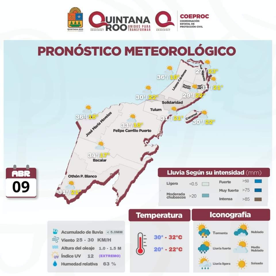 La sensación térmica alcanzará los 39 grados. Cancún(Marcrix Noticias).- Basándose en la valoración y análisis de la información meteorológica en general realizada y lo relativo a los pronósticos del Servicio…