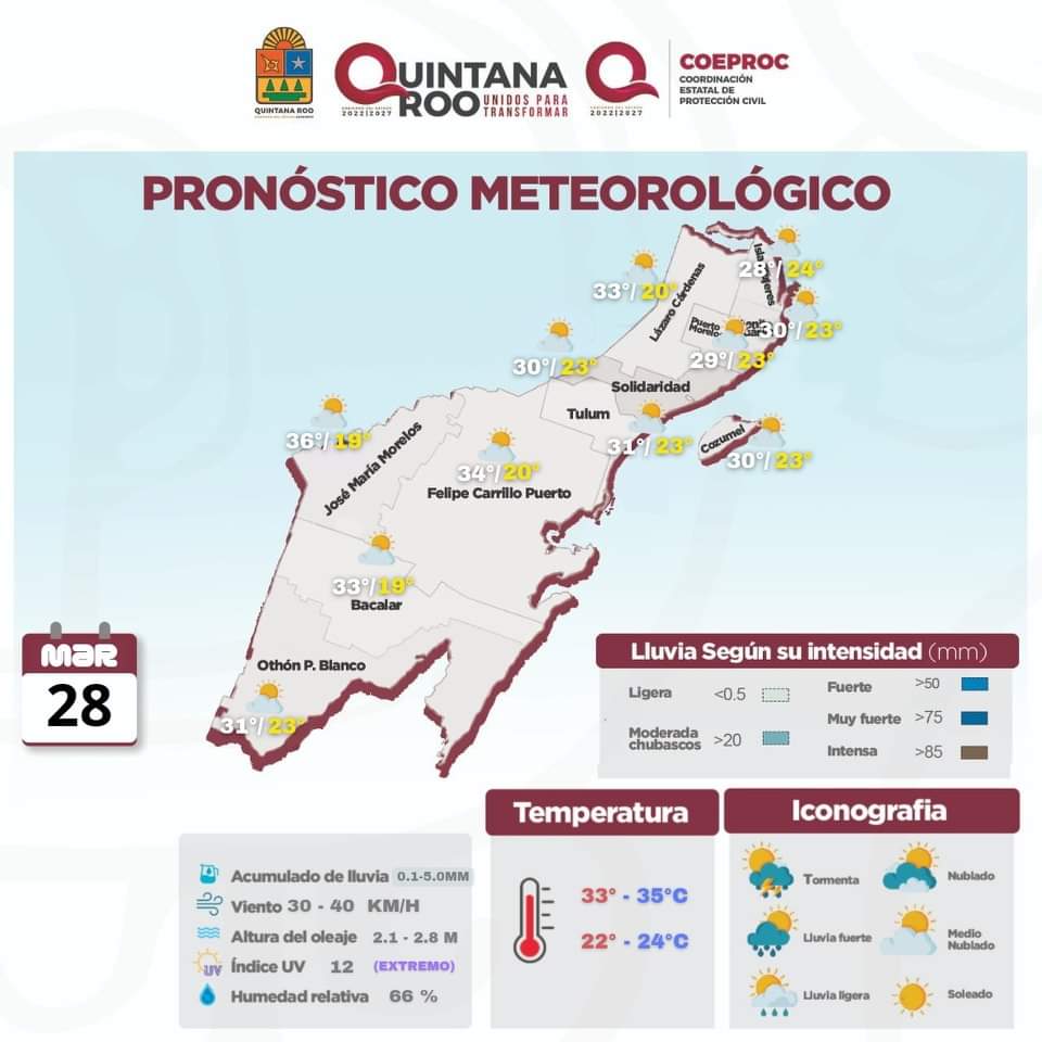 La sensación térmica alcanzará los 39 grados al mediodía. Cancún(Marcrix Noticias).- Basándose en la valoración y análisis de la información meteorológica en general realizada y lo relativo a los pronósticos…