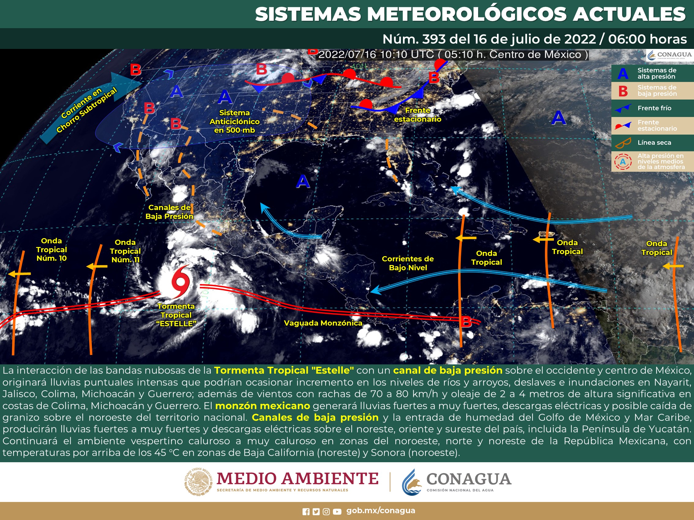 La tormenta tropical 'Estelle' que en las próximas horas se convertirá en huracán se desplazará al sur de las costas de Colima y Michoacán; sus bandas nubosas, en interacción con…