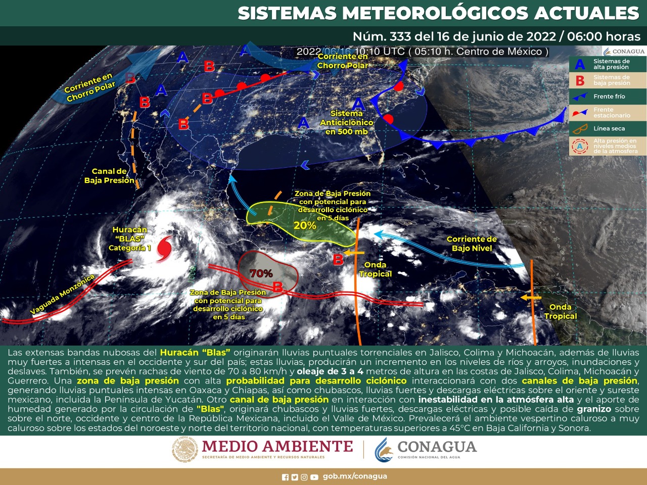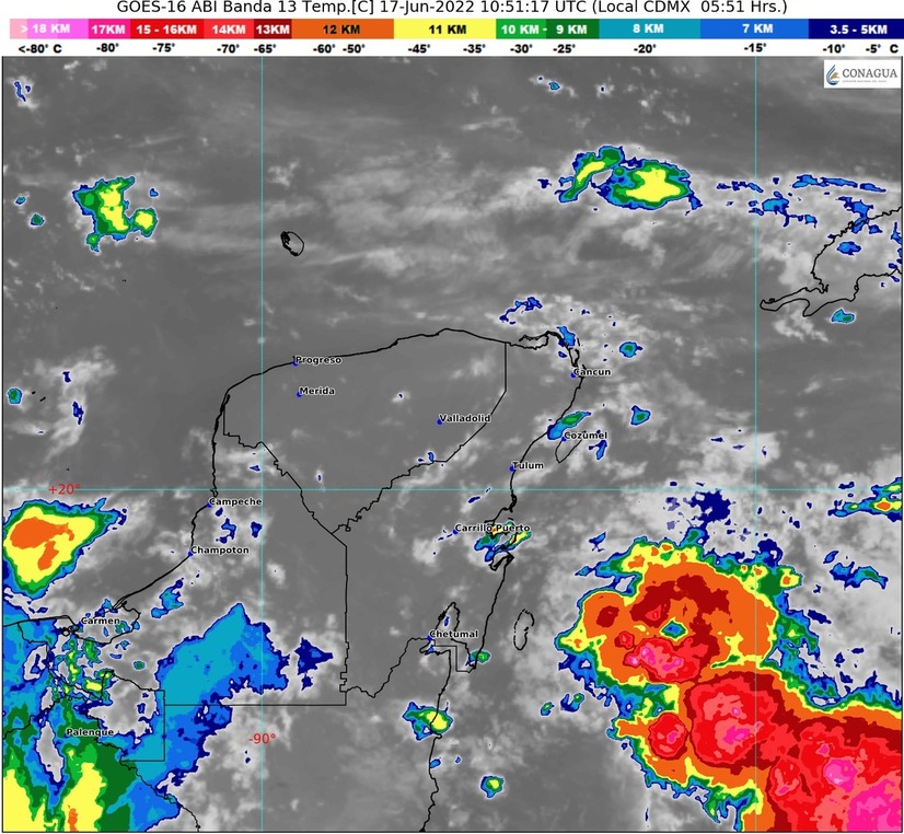 Habrá lluvias torrenciales durante esta noche en el Sureste de México