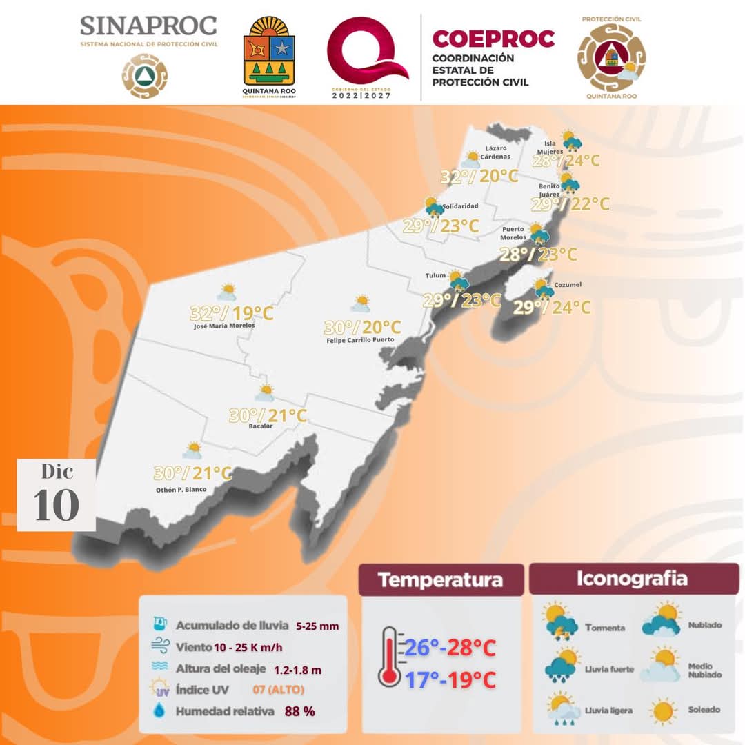 Intervalos de chubascos durante este sábado en Quintana Roo