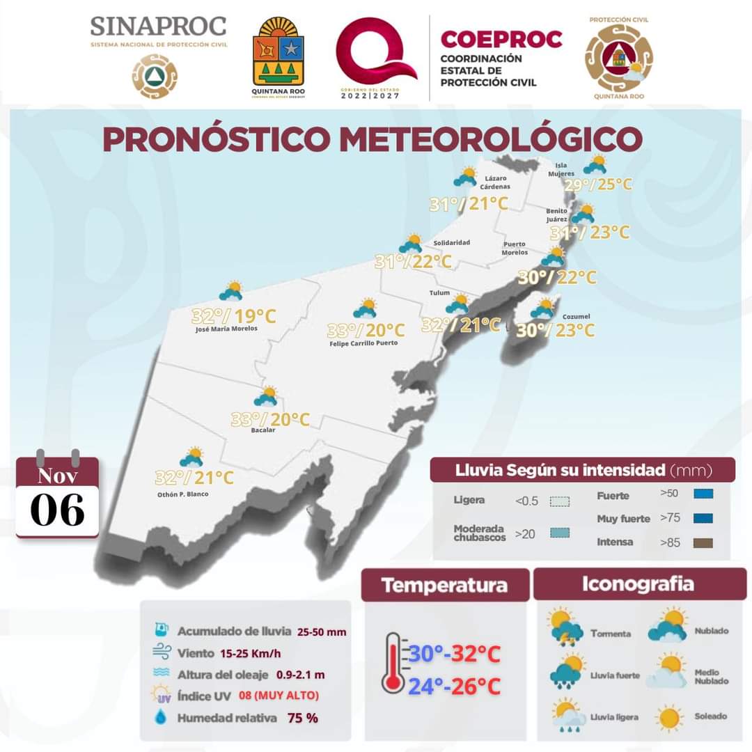 Se espera un cielo medio nublado. Cancún(Marcrix Noticias).- La afluencia de humedad del Mar Caribe hacia la región peninsular, mantendrá sobre el estado de Quintana Roo cielo parcialmente nublado con…