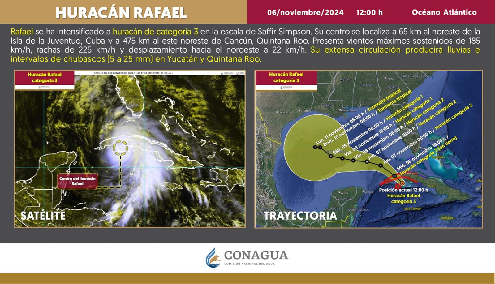 Con vientos de hasta 185 km/h, Rafael se dirige hacia el occidente de Cuba y podría generar lluvias y marejadas peligrosas; Quintana Roo y Yucatán en alerta. Cancún (Marcrix, Noticias).-…