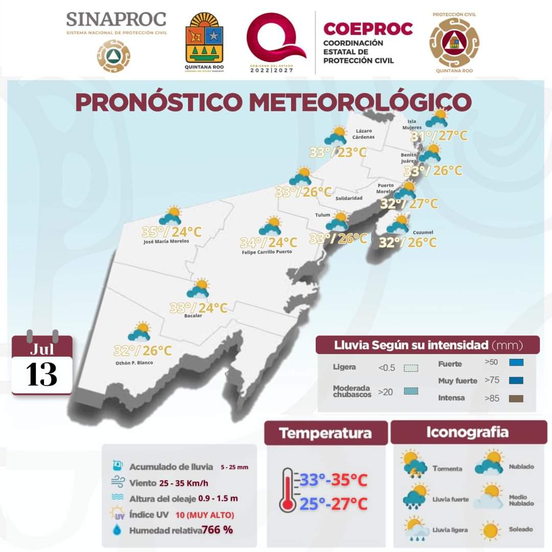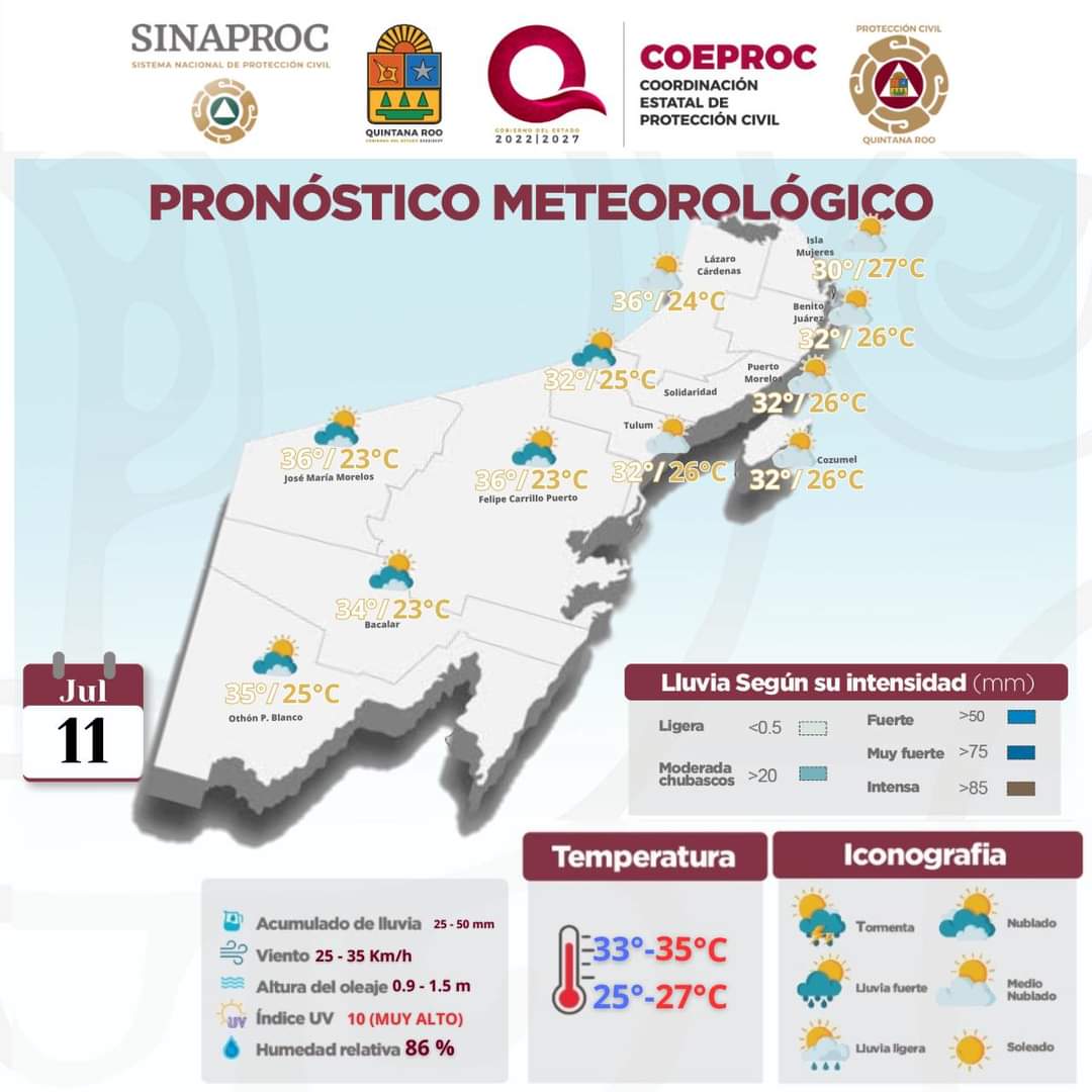 El ambiente será bochornoso en la entidad. Cancún(Marcrix Noticias).- El desplazamiento de la onda tropical número 10 sobre la región peninsular y la entrada de humedad del Mar Caribe, mantendrán…