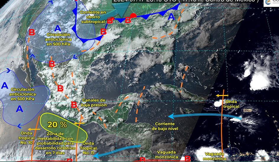 La onda tropical número 11 recorrerá gradualmente el sureste y sur del país Cancún (Marcrix Noticias).- Para la noche de hoy miércoles, la onda tropical número 11 recorrerá gradualmente el…