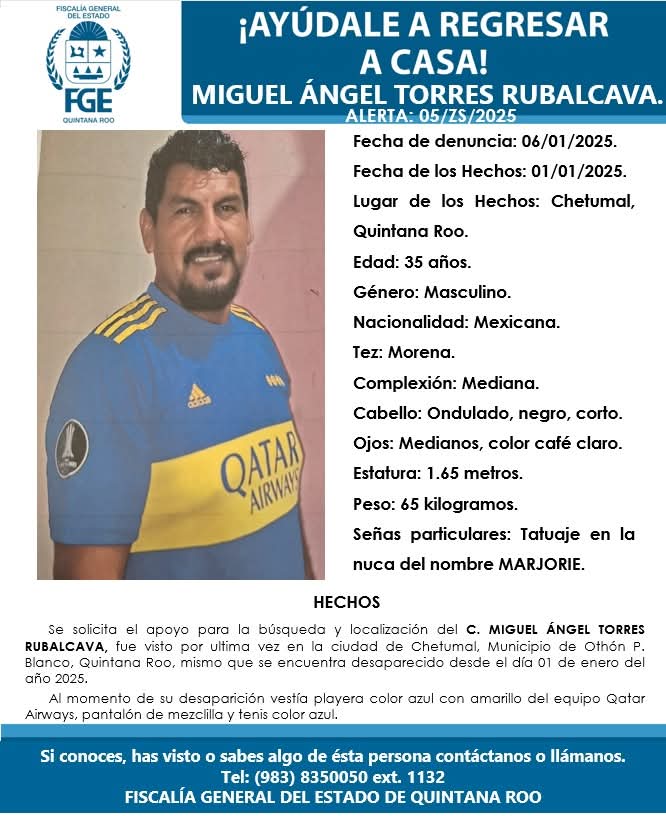 La Fiscalía General de Quintana Roo, emitió la alerta de la desaparición de dos personas en la comunidad de San Cosme, municipio de Lázaro Cárdenas, padre e hijo menor de…