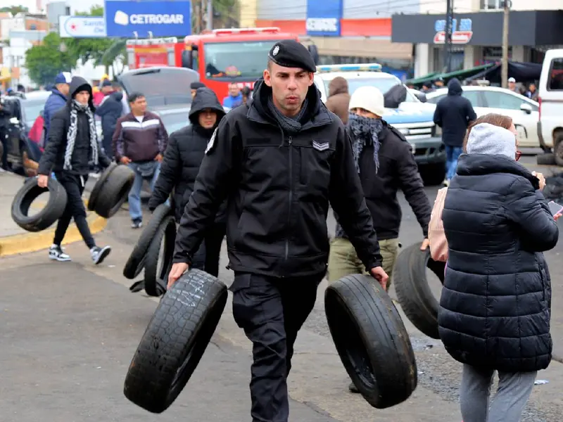 Policías activos y retirados de la provincia de Misiones, en el noreste de Argentina, protestan este sábado por mejoras salariales, en el segundo día de una movilización callejera que activó…