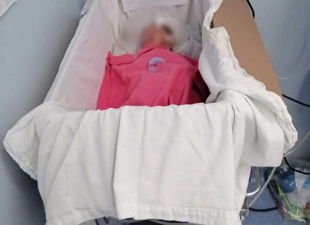 Personal de un hospital de Oaxaca coloca a un bebé dentro de una caja de cartón