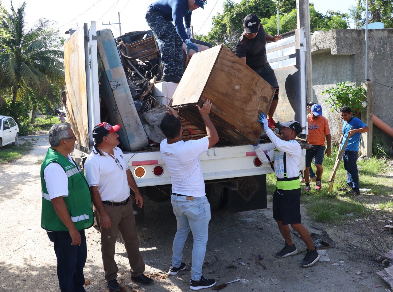 Ante la amenaza de “Beryl”, retiran en Puerto Morelos objetos que representen riesgo de convertirse en proyectiles