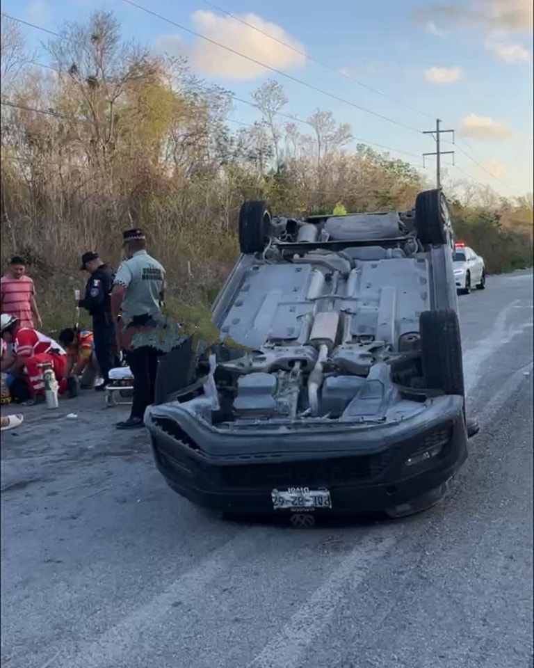Vuelca vehículo en la carretera 307 y muere perrito al ser atropellado