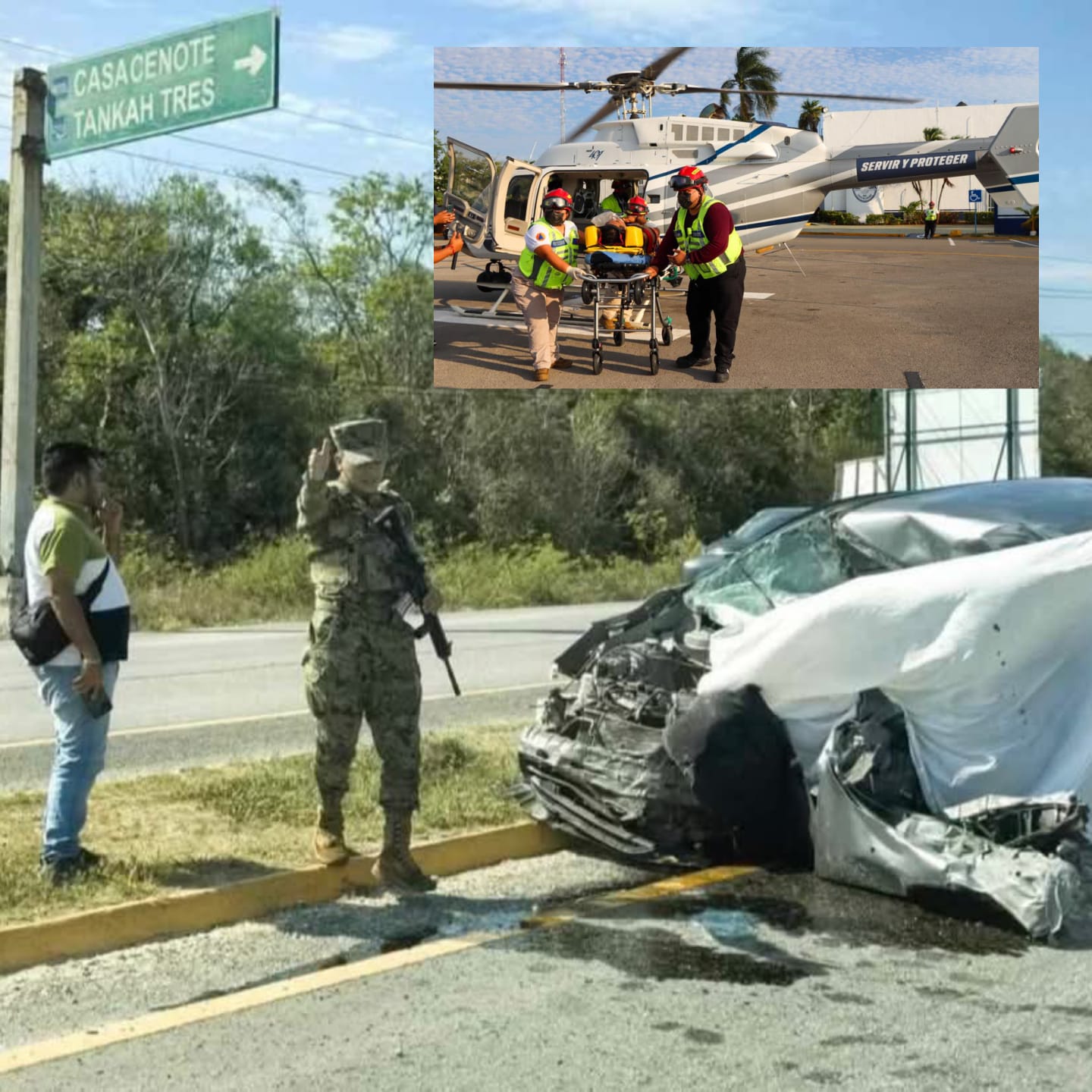 El conductor de un taxi quedó prensado; el helicóptero de Playa del Carmen lo trasladó al Hospital de este municipio Tulum (Marcrix Noticias).— Un fuerte choque entre dos vehículos en…