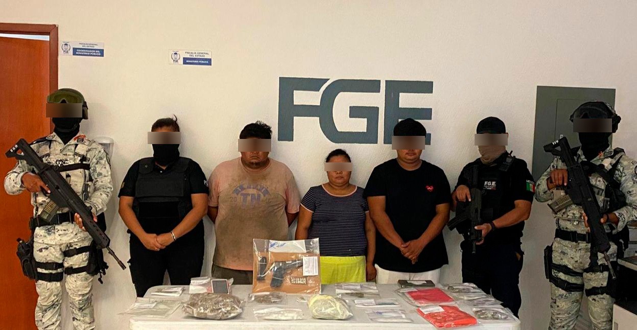Cancún(Marcrix Noticias).- Tres personas detenidas, así como un arma de fuego y diversas dosis de presuntos estupefacientes aseguradas, fueron el resultado de tres cateos, uno en Puerto Morelos y dos en Benito Juárez, cumplimentados por la Fiscalía General del Estado, en colaboración con la Guardia Nacional y la Secretaria de la Defensa Nacional (Sedena).