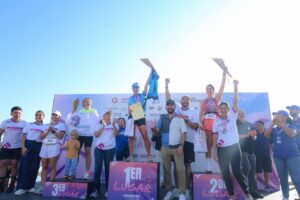 Posteriormente, las autoridades hicieron la entrega de medallas a las y los atletas que iban cruzando por la meta. Asimismo, distinguieron a las ganadoras y ganadores de las diferentes categorías, quienes posaron en el pódium con sus medallas, reconocimientos, trofeos y premios.