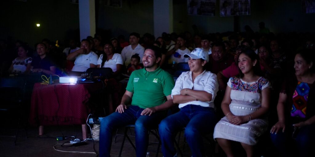 El Secretario General del PVEM, Renán Sánchez Tajonar, presenció el debate junto con la Dirigente del Comité Ejecutivo Estatal de Morena en Quintana Roo, Johana Acosta, y la presidenta municipal de Felipe Carrillo Puerto, Mary Hernández.