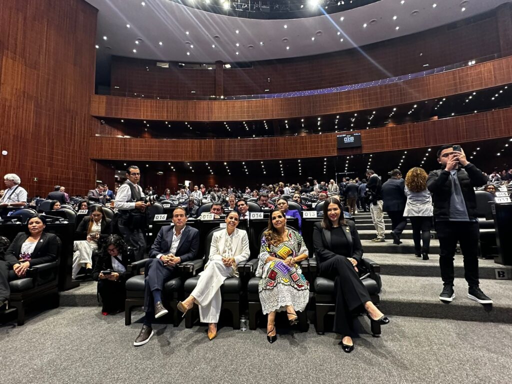 En su primera actividad, desde temprana hora, la alcaldesa cancunense estuvo presente en la Sesión Solemne con motivo de esa celebración, realizada en el Palacio Legislativo de San Lázaro, sede de la Cámara de Diputados y del Congreso de la Unión, a la que asistieron un total de 283 legisladoras y legisladores federales para recibir a la comitiva de autoridades quintanarroenses.