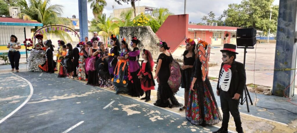Playa del Carmen (Marcrix Noticias)- Para trascender a la comunidad la conservación de tradiciones y costumbres mexicanas, la Primaria “Ramón López Velarde” Turno Vespertino, organizó emotivo festejo de Día de Muertos.