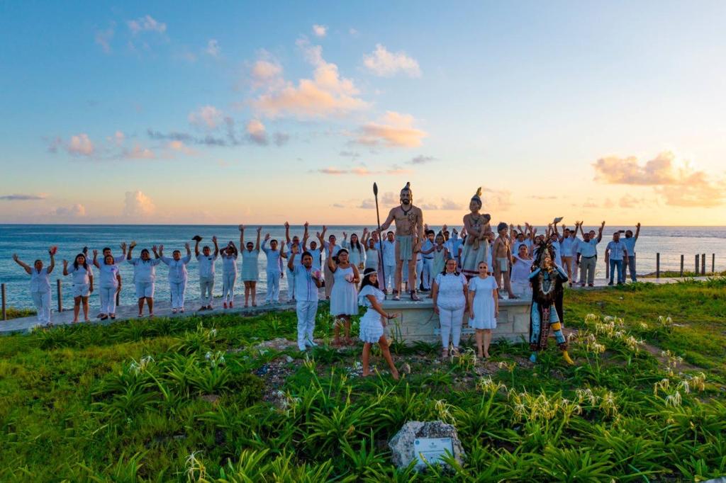 Isla Mujeres, Quintana Roo, 19 de septiembre de 2022.- Los primeros y cálidos rayos de sol en Punta Sur fueron testigos este día de la tradicional ceremonia maya del sonido de los caracoles en víspera del Día Mundial de la Paz a celebrarse el próximo 21 de septiembre en todo el mundo y en la que participó en representación de la presidenta municipal, Atenea Gómez Ricalde, la presidenta honoraria del Sistema para el Desarrollo Integral de la Familia (DIF) de Isla Mujeres, Minelly Ricalde Magaña, directores del Ayuntamiento, integrantes del Cabildo y turistas.