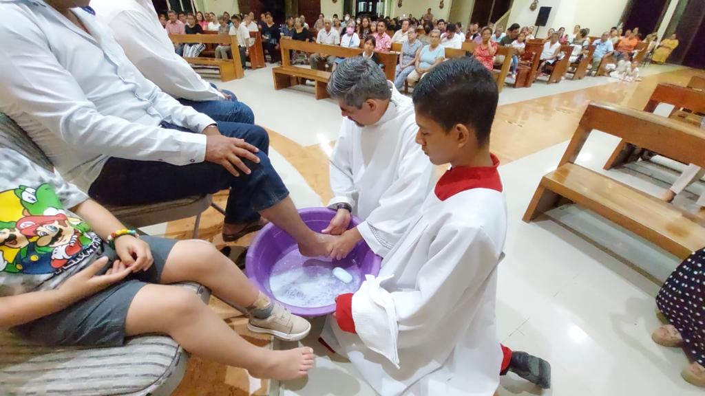 Cientos de fieles católicos abarrotaron los templos para conmemorar el lavatorio de pies y la última cena.