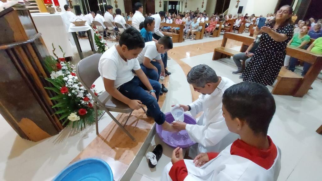 Cancún (Marcrix Noticias).- Inicia el Triduo Pascual, celebran el lavatorio de pies, la institución de la Eucaristía y la visita a las Siete Casas.