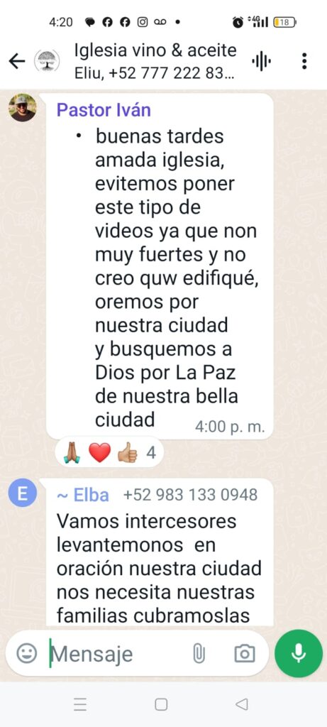 En tanto en diversas iglesias, es tal el miedo que hay, que pastores cristianos convocan a sus hermanos en la Fe a realizar oración por Chetumal, para el retorno de la paz y la seguridad, luego de nueve días de acontecimientos violentos, entre enfrentamientos a balazos, ejecuciones, levantones y ajuste de cuentas entre narcotraficantes.