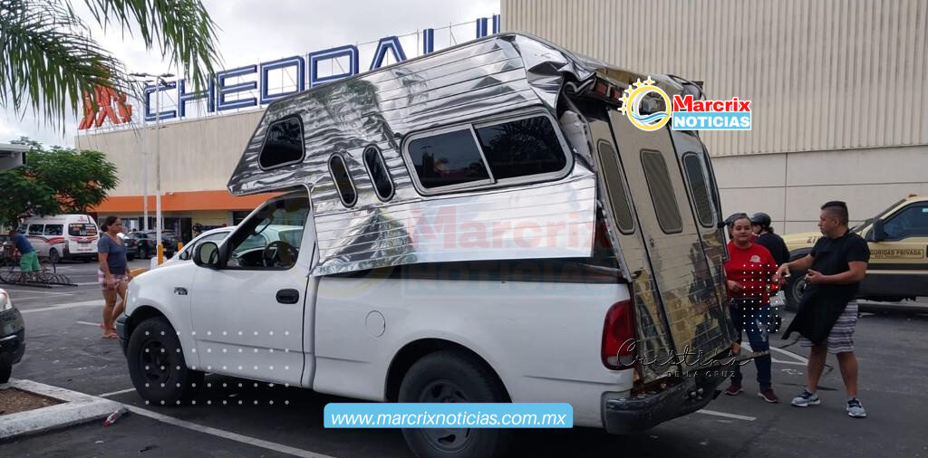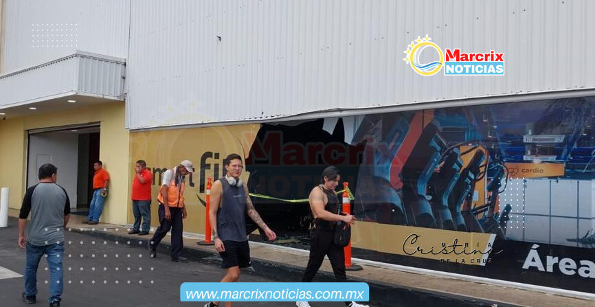 La camioneta, fuera de control, se estampó contra el cristal del gimnasio, situado dentro de la Multiplaza ubicada en la SM 98 sobre la avenida José López Portillo.
