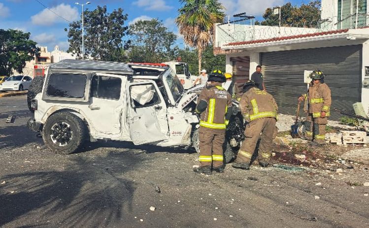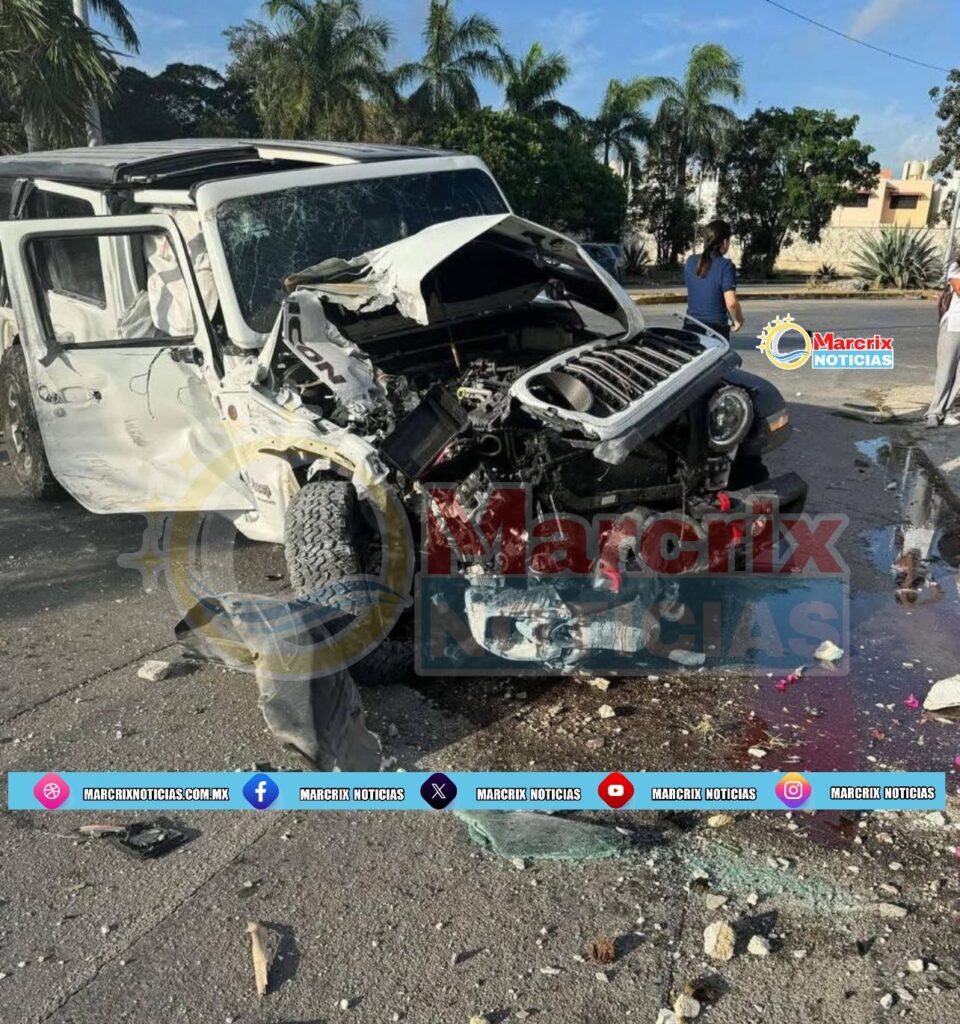 Cancún (Marcrix Noticias)- La falta de precaución al conducir fue la causa principal de un aparatoso accidente, en el que un Jeep quedó prácticamente destrozado en la Supermanzana 524 de Cancún.