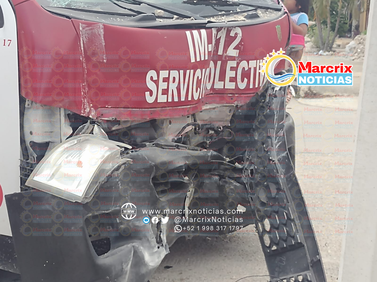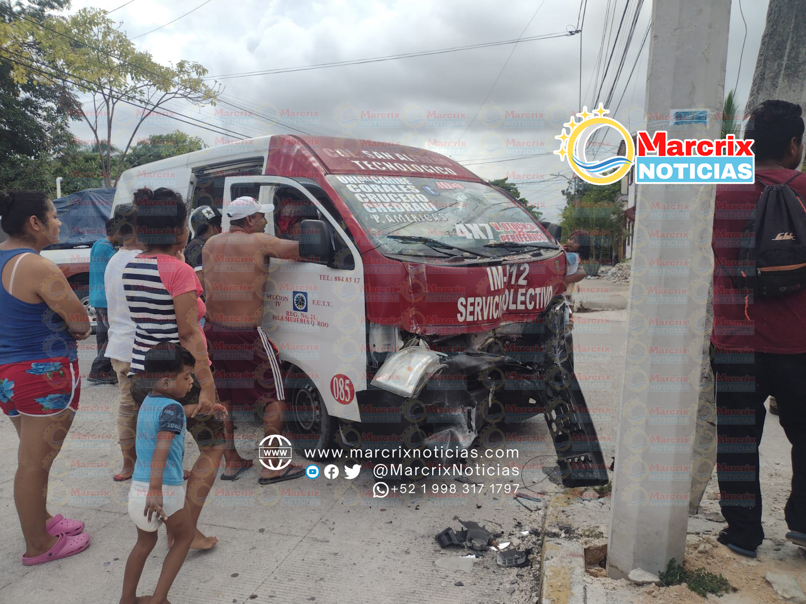Isla Mujeres (Marcrix Noticias).- Una urvan de las rojas servicio público de la Zona Continental de Isla Mujeres se impactó contra un poste sobre la calle 66 en la colonia El Ejido.