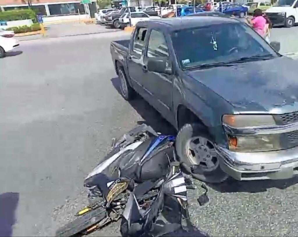 El conductor de una camioneta y una motociclista protagonizaron este aparatoso accidente, el cual dejó “helados” a los testigos.