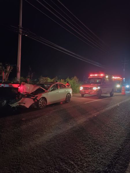 Testigos señalan que al parecer una falla mecánica provocó que el automóvil color blanco, tipo Kia se impactara el la parte trasera de una patrulla de Seguridad Pública que se encontraba estacionada en el filtro policial.