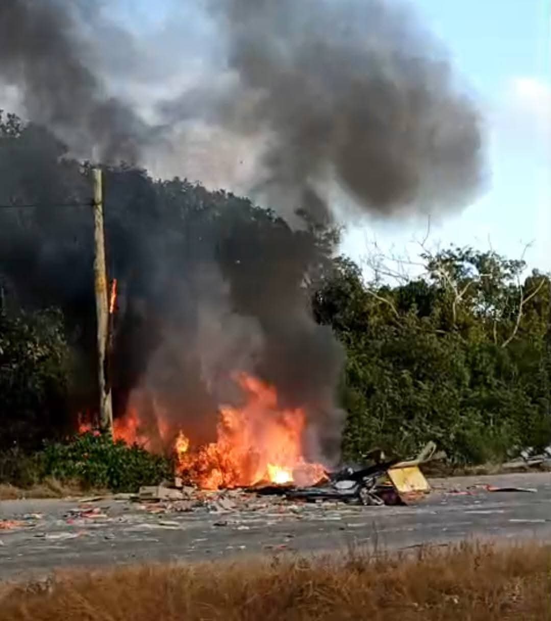 De acuerdo con los primeros reportes, a través del número de emergencias 911 se solicitó apoyo al informarse que un vehículo con logotipos de Sabritas se encontraba envuelto en llamas luego del fuerte choque ocurrido cerca del hotel Grand Oasis Tulum.