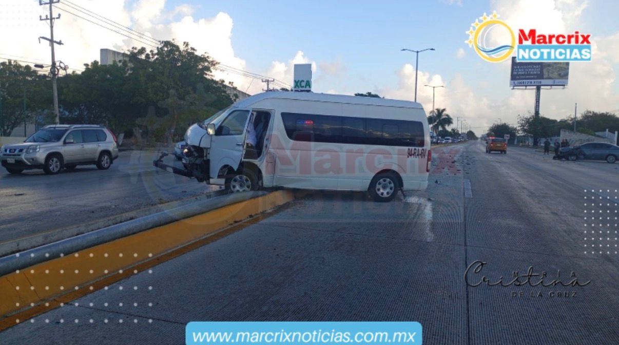 Cancún. (Marcrix Noticias).- Un fuerte choque entre una Van de transporte turístico y un auto particular dejó una persona lesionada y provocó tráfico pesado sobre el Boulevard Luis Donaldo Colosio en Cancún, la mañana de este domingo 1 de marzo.