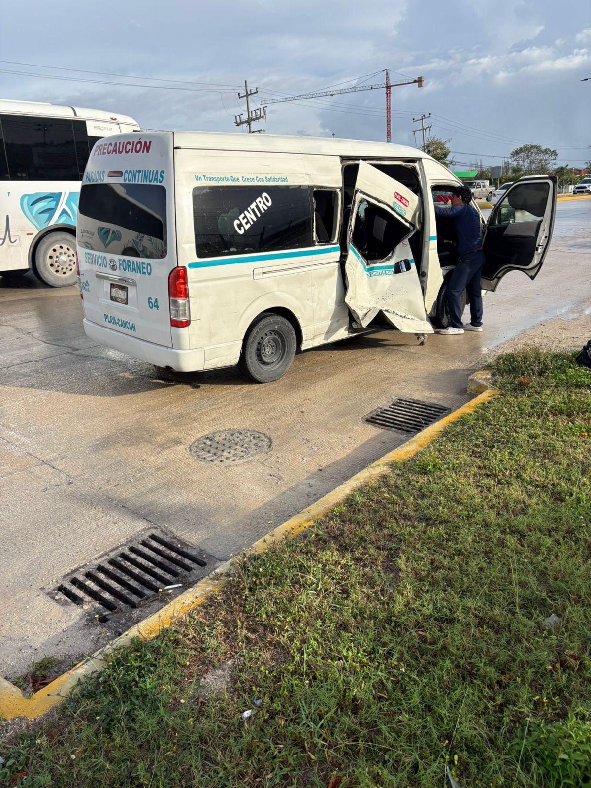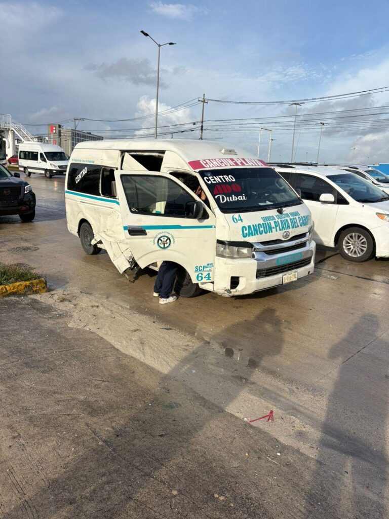 Tras impactarse contra la estructura de concreto, la unidad continuó su trayectoria y se estrelló contra un vehículo Toyota Hiace, manejado por Gustavo Salvador Tejero Castillo, de 40 años, quien circulaba en la misma dirección, del aeropuerto hacia el centro de Cancún.