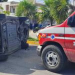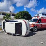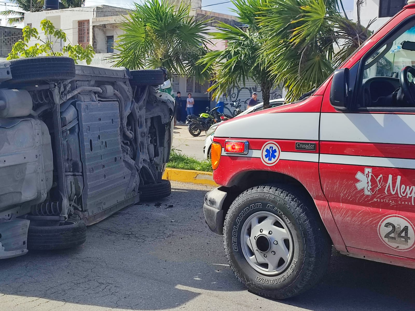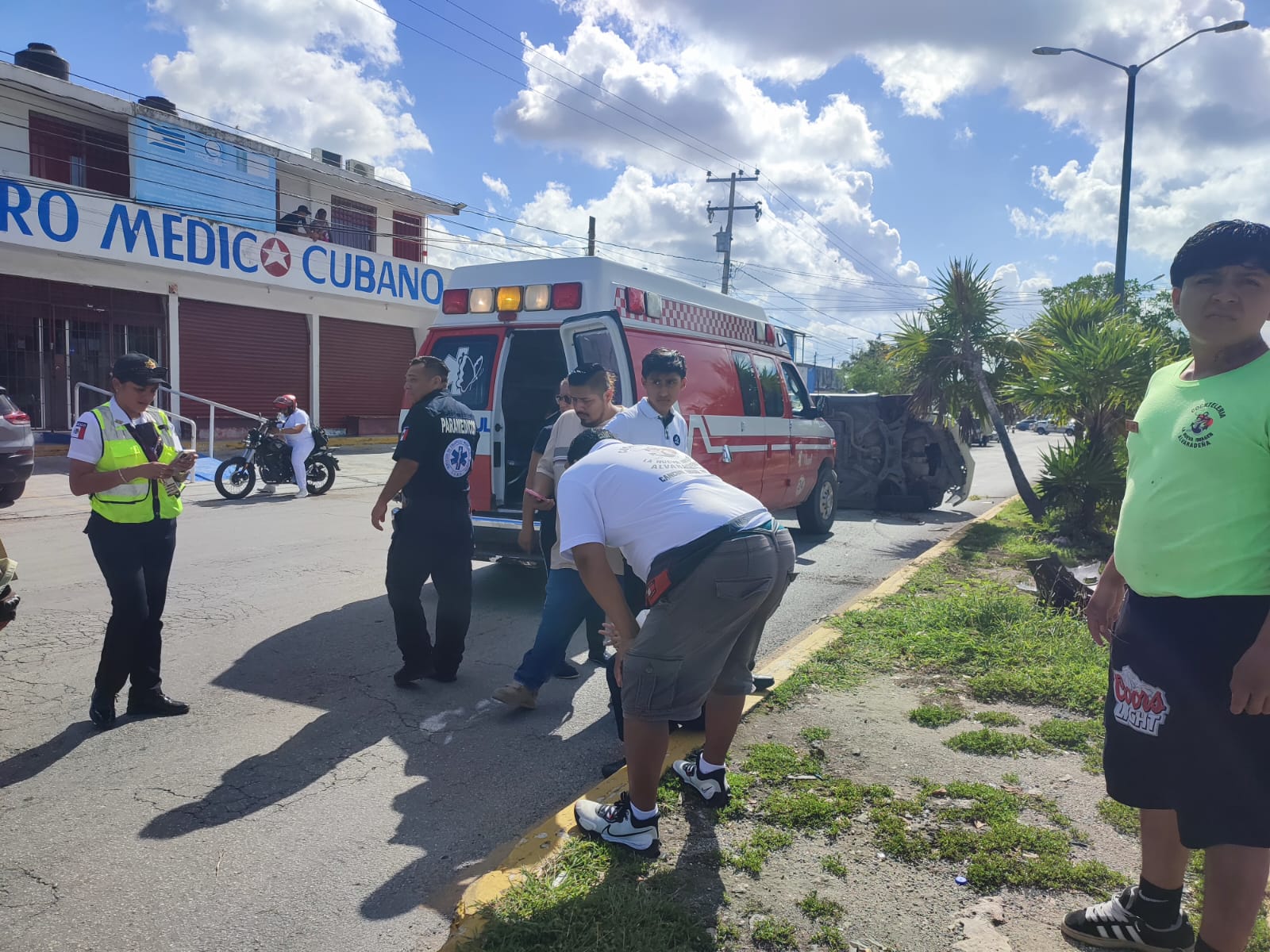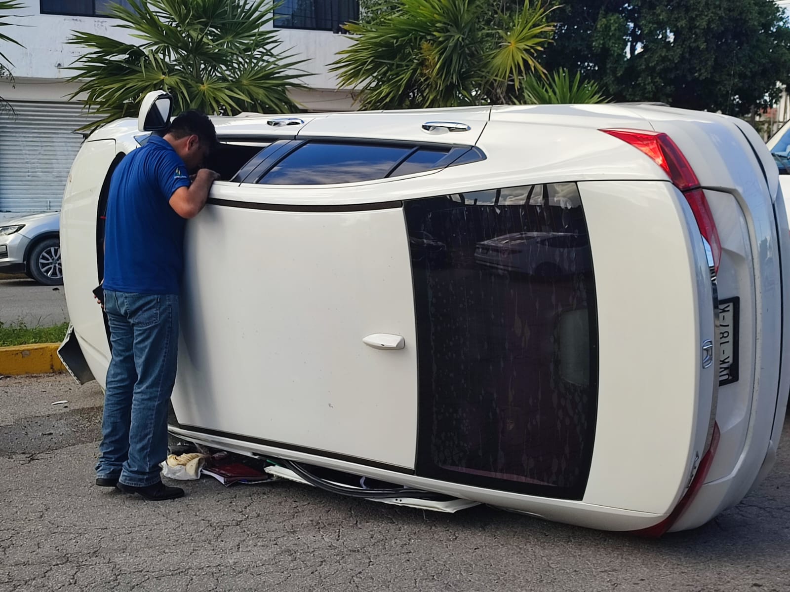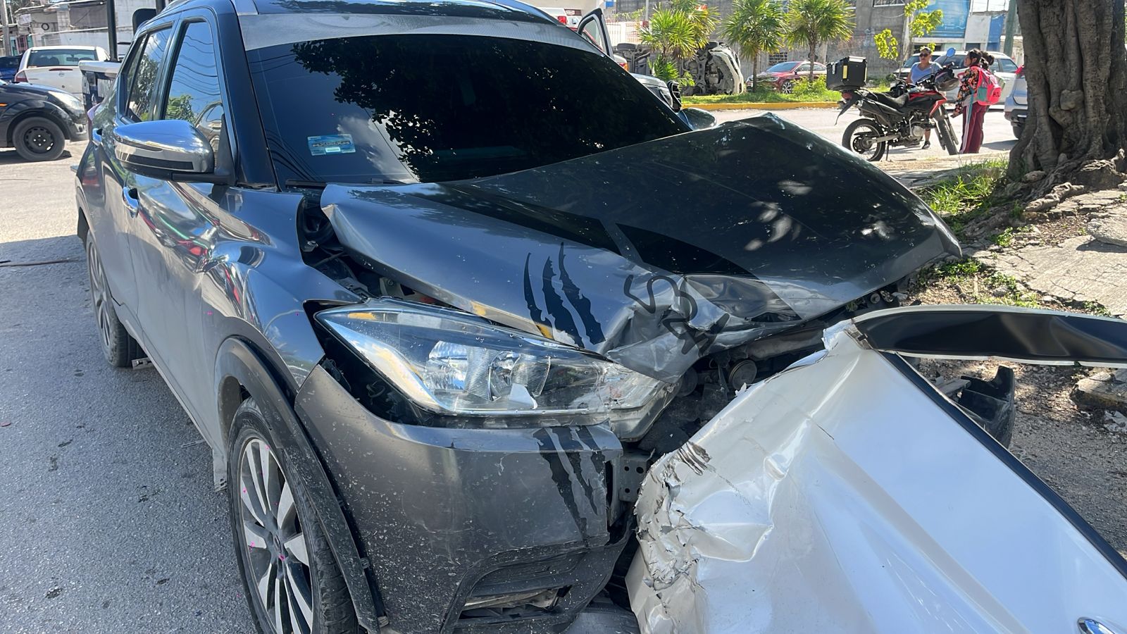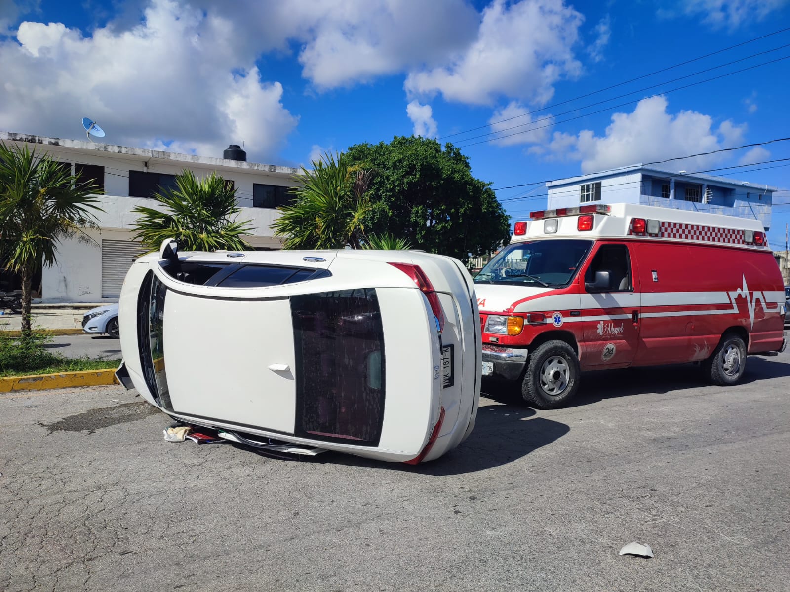 El fuerte accidente fue entre dos automóviles, un Honda Civic color blanco que quedó volcado y una camioneta gris tipo Kics Nissan, justo en el cruce de la calle 89, avenida Leona Vicario y avenida Kabha.