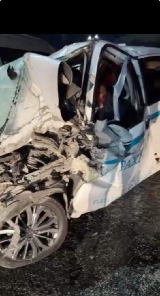 De acuerdo con los datos que se recabaron sobre este hecho, ocurrió casi a la entrada de Cancún, donde el taxi chocó de fuerte manera con la parte trasera de la camioneta, la cual segundos antes había colisionado con la Van.
