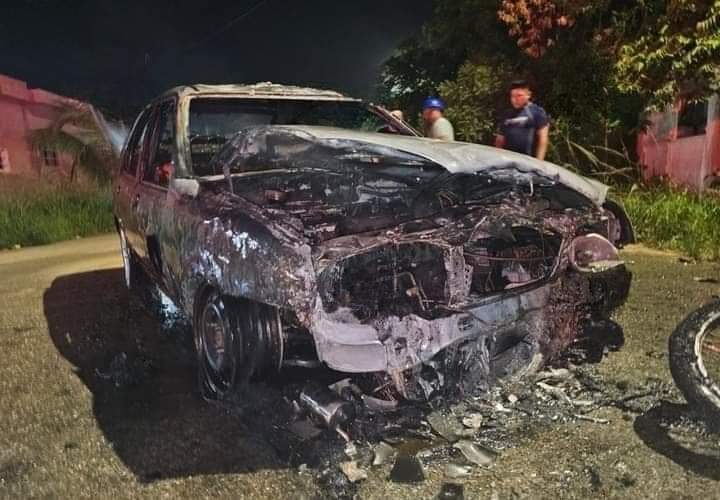 Fue en cuestión de minutos cuando el fuego se propagó devoró a ambas unidades móviles, mismas que fueron declaradas como pérdida total.