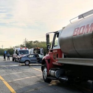 Choque vial en la carretera Mérida Tizimín genera cierre parcial a la altura del entronque a Cansahcab y obliga a desviar la circulación mientras laboran los cuerpos de emergencia