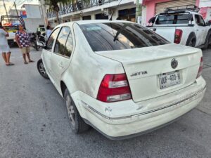 El vehículo 2, un Volkswagen Jetta blanco con placas UUP-470-H de Quintana Roo, era conducido por Guadalupe Yasmín de Jesús Ceballos, de 36 años, mesera y vecina de la SM 234.