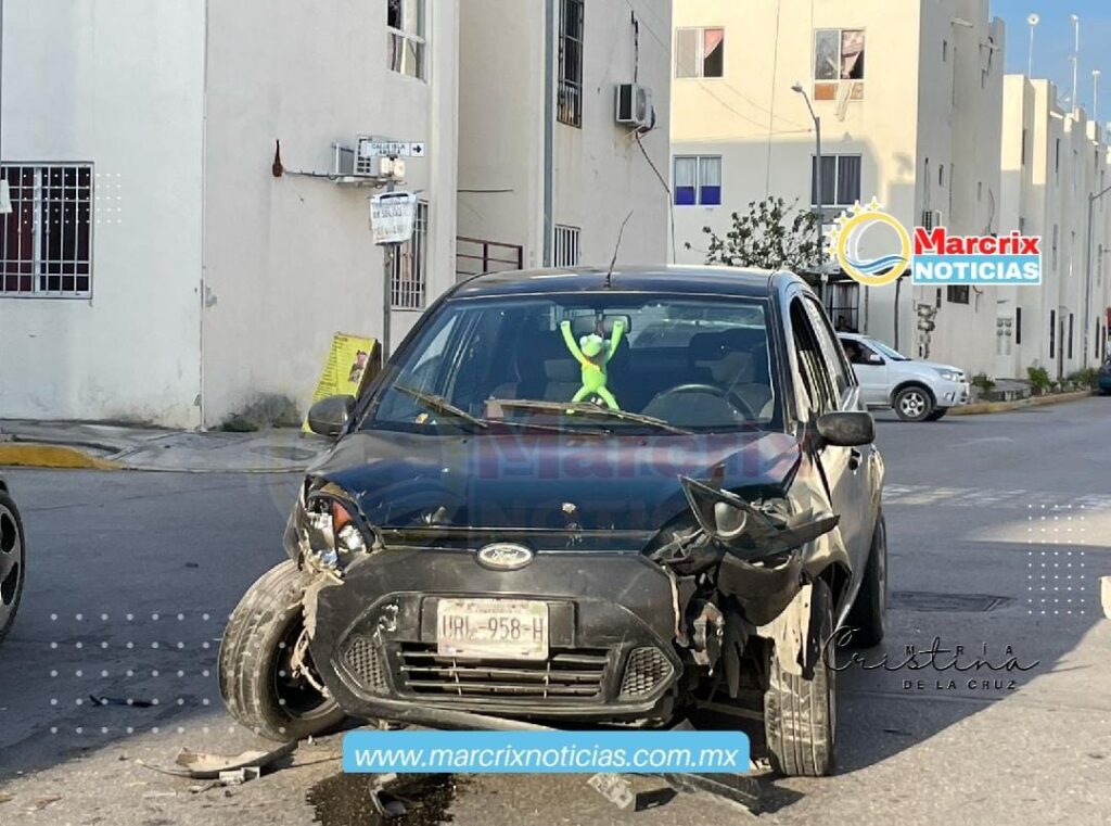 Exactamente en el cruce de las calles Isla Mujeres e Isla Jamaica en el fraccionamiento Paseos del Mar, donde, pese al fuerte impacto no se reportaron personas lesionadas.